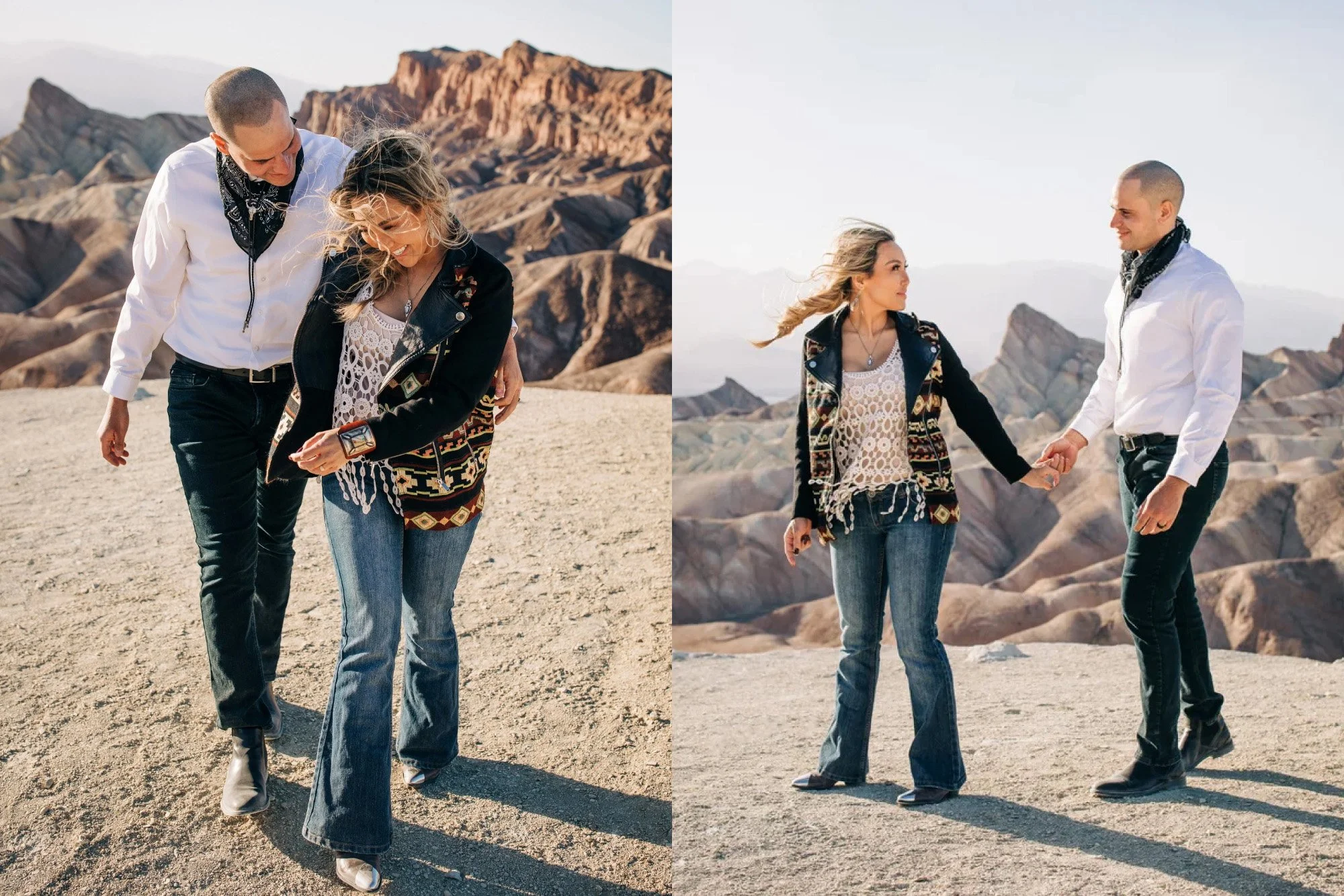 Their dog’s bandana compliments their outfits.